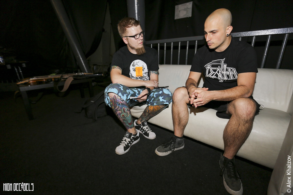 Мы знакомы с Дрейманом уже много лет – с 2005 года. Он является нашим поклонником с тех времен. Мы подарили ему диск с нашим предыдущим альбомом “In Waves” когда мы турили вместе пару лет назад. Его он очень заинтересовал и он сам предложил нам поработать вместе в будущем. После этого мы еще обкатывали эту пластинку в туре по разным странам, включая Россию. А потом, когда уже настало время для нового альбома, мы стали присматриваться к разным продюсерам и снова встретились с Дэвидом. Он пригласил нас к себе домой, где мы послушали наши демки к новому альбому, обсудили разные рабочие моменты. И тогда мы поняли, что это именно тот человек, который нам нужен. Мы открыли много нового, работая с ним. Теперь мы слышим много хороших отзывов касательно “Vengeance Falls”. Людям очень нравится наш сингл “Strife” с этого альбома. Даже на вчерашнем концерте мы были сильно удивлены, когда увидели, как публика подпевает Мэтту в этой песне.
